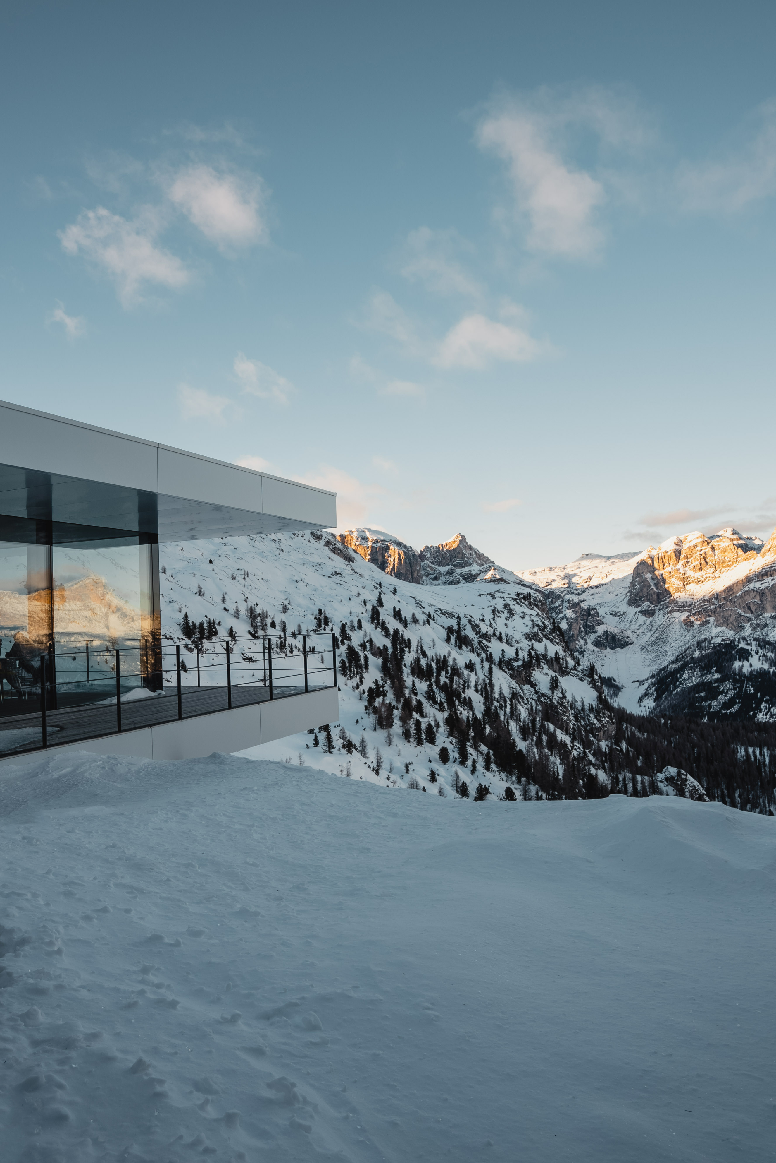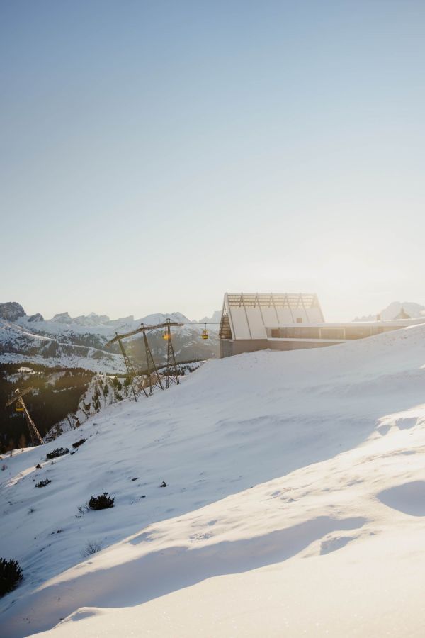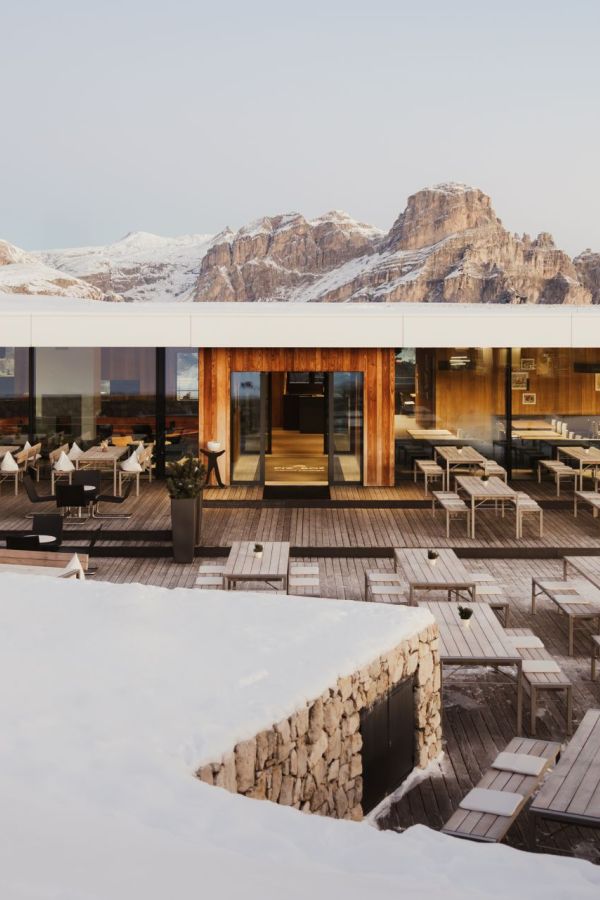 Qui troverete una location mozzafiato, sospesa tra cielo e terra. Il PIZ BOÉ Alpine Lounge è un rifugio alpino insolito, da tratti minimal e caratterizzato da ampi spazi e da arredi di design.